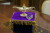ベロアのパープル台座にはゴールドのフリンジを付け、